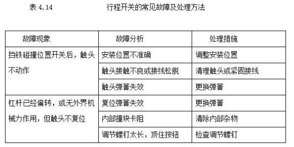 行程開關主要由操作機構、觸點系統和外殼3部分構成。行程開關種類很多,一般按其機構可分為直動式、轉動式和微動式。常見的行程開關的外形、結構與符號,如表4.13所示。